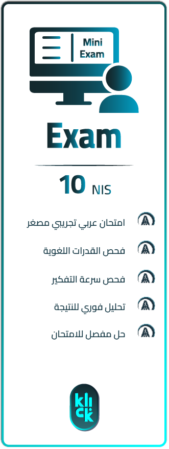 أمامك امتحانات إلكترونية للصف السادس. الامتحانات الإلكترونية التالية في التفكير المدرسي بموضوع العربي.